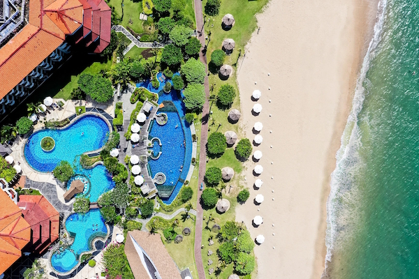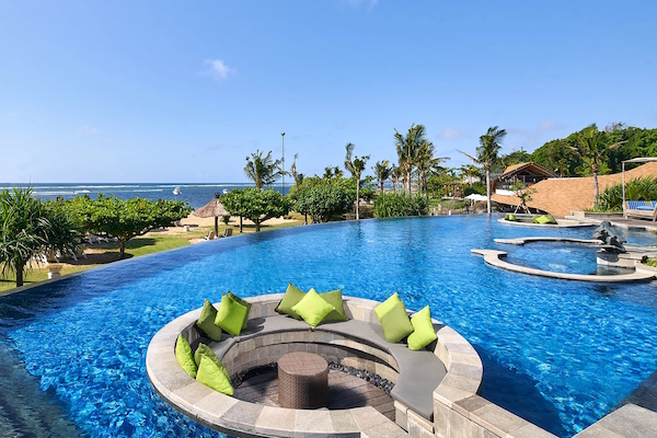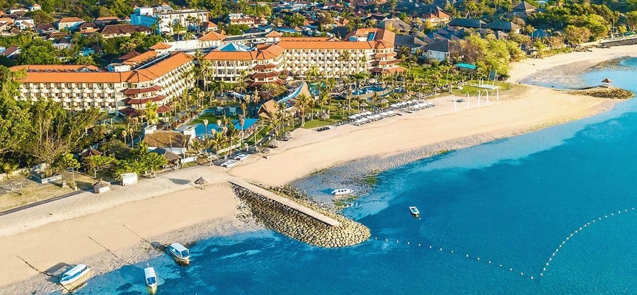 Immerse yourself in all-inclusive beachfront luxury on Nusa Dua’s iconic golden shores, where sweeping views of the Indian Ocean unfold from nearly every angle.