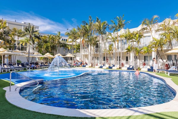 Home to a sun-lit lagoon pool with a kids' wading area and indoor lap pool, this palm-fringed resort is ideal for groups and families with direct access to the Shoal Bay Country Club.