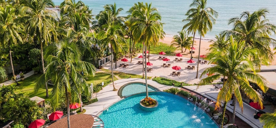 Surrender to tropical relaxation at the luxury Ramada Resort by Wyndham Khao Lak on popular Bang Niang Beach. Sunny days can be spent kicking back with a cocktail by the pool, wading over to the swim-up Pool Bar to order your next drink, or lazing under the resort’s signature red parasols.