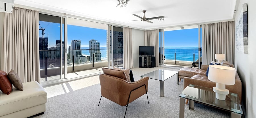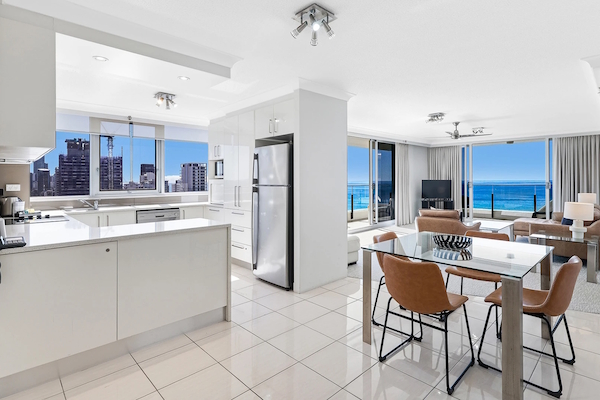 Each self-contained apartment comes complete with a fully equipped kitchen, inviting open-plan living area and stunning ocean views. If you can manage to peel yourself from this sun-drenched retreat, fill your days exploring some of Broadbeach’s best eateries, stretch out on the golden sands of Kurrawa Beach mere steps away or indulge in a retail therapy session at the renowned Pacific Fair Shopping Centre.