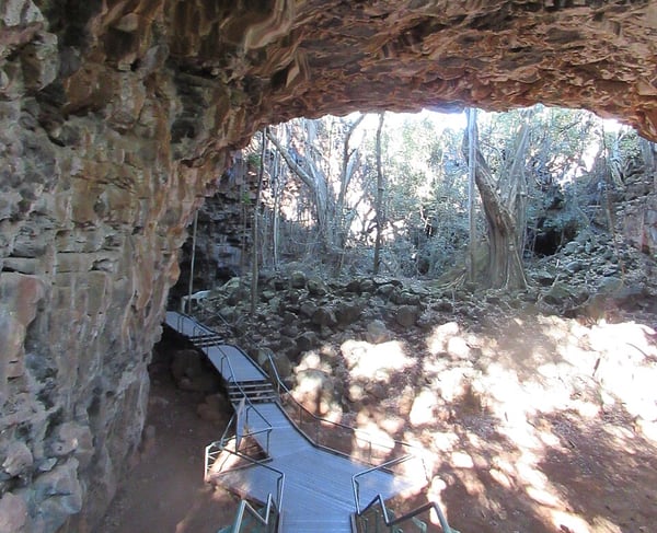 What makes the formation so fascinating is how “alive” it still feels geologically. Over time, sections of the tube roofs collapsed, creating more than 70 caves and skylights that now open the system to daylight and rainforest growth. Some entrances are lush with vine thickets and fig trees, while deeper chambers remain dark, cool, and eerily silent—home to bats, rock-wallabies, and some of Australia’s most specialised subterranean ecosystems.