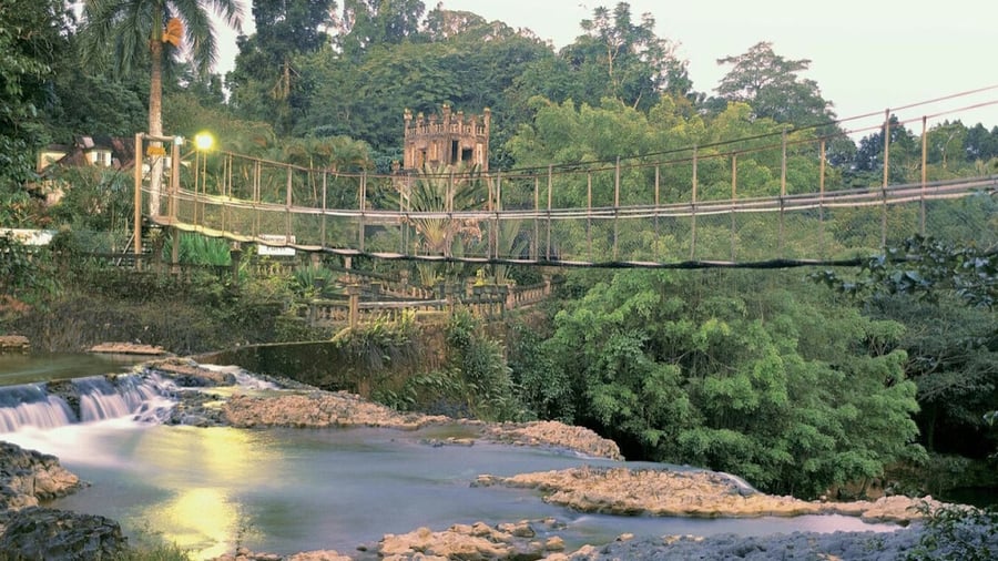 Wandering through Paronella Park now feels like exploring a hidden European ruin… except you’re surrounded by dense tropical rainforest. There are vine-covered archways, mossy staircases, suspension bridges and the constant sound of water flowing from the falls. Come evening, the whole place lights up, turning it into something even more cinematic.
