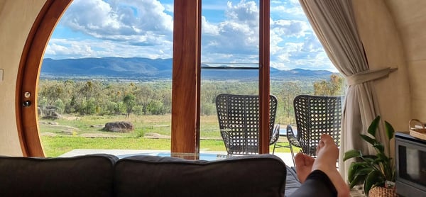 Set across roughly 22 acres of forested land, the property is surrounded by dams, fern gullies and native wildlife, from wombats to wallabies. It’s quiet, secluded and intentionally off-grid in feel — the kind of place where the outside world fades away quickly.